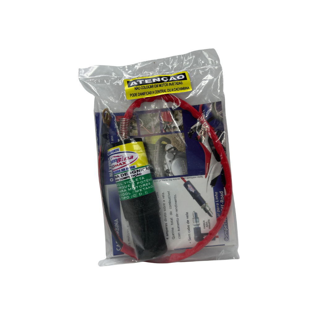 A Cachimbina tem como finalidade principal oferecer alta potência elétrica à vela, através de super faíscas proporcionando uma queima total e uniforme do combustível, aumentando a potência do motor prevenindo a poluição do ar com descarga limpa. As vantagens do uso da Cachimbina são: queima total do combustível, partidas rápidas, ganho de torque e potência, elimina a carbonização da vela, não mexe no ponto de ignição, aumenta o tempo de ignição. Este modelo substitui a bobina de ignição original da moto.
